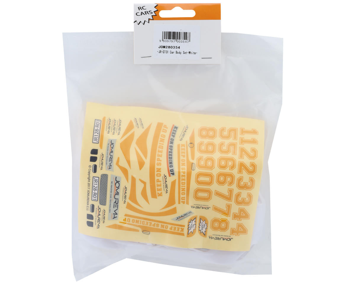 Jomurema JR-GT01 Mini-Z MR-03 Pre-Painted Hard Body Set. Designed to unwrap the full potential of the Mini-Z MR-03 chassis and drastically elevate performance, this optional race-inspired JR-GT01 body is intended for the MR-03 platform to provide supreme aerodynamics and enhance the overall performance and durability of your Mini-Z. Package includes one pre-painted body, one rear wing, light lenses, clipless body mounts and one decal sheet.