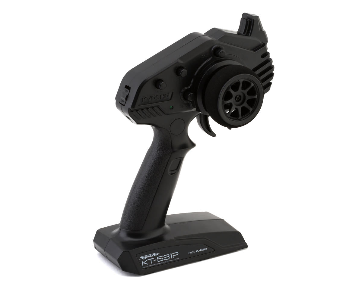 The 2.4GHz KT-531P features steering and throttle trim as well as dual rate adjustment of steering angle and control for the flashing speed of optional LEDs.*** In addition, the transmitter has a Training Mode feature which limits speed of the car for easy learning (default setting at the time of shipment is Training Mode).
