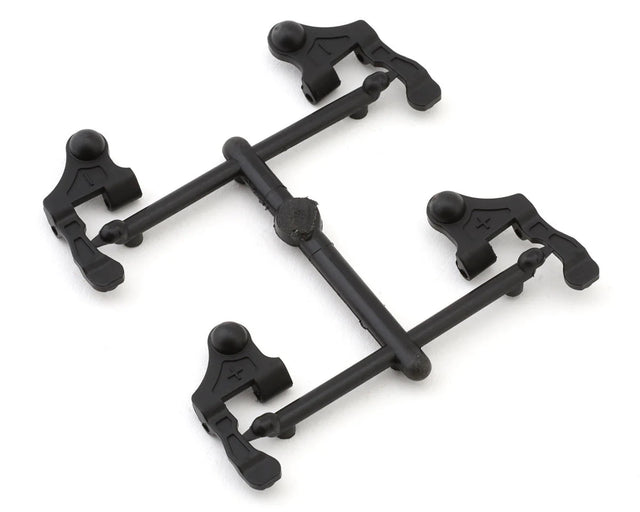 Kyosho MR-04 Caster Setting Upper Arm Set. This optional arm set is intended for the MR-04 platform. Using hard compound construction these arms provide additional steering feel and consistency for your vehicle. Package includes two + arms and two - arms.